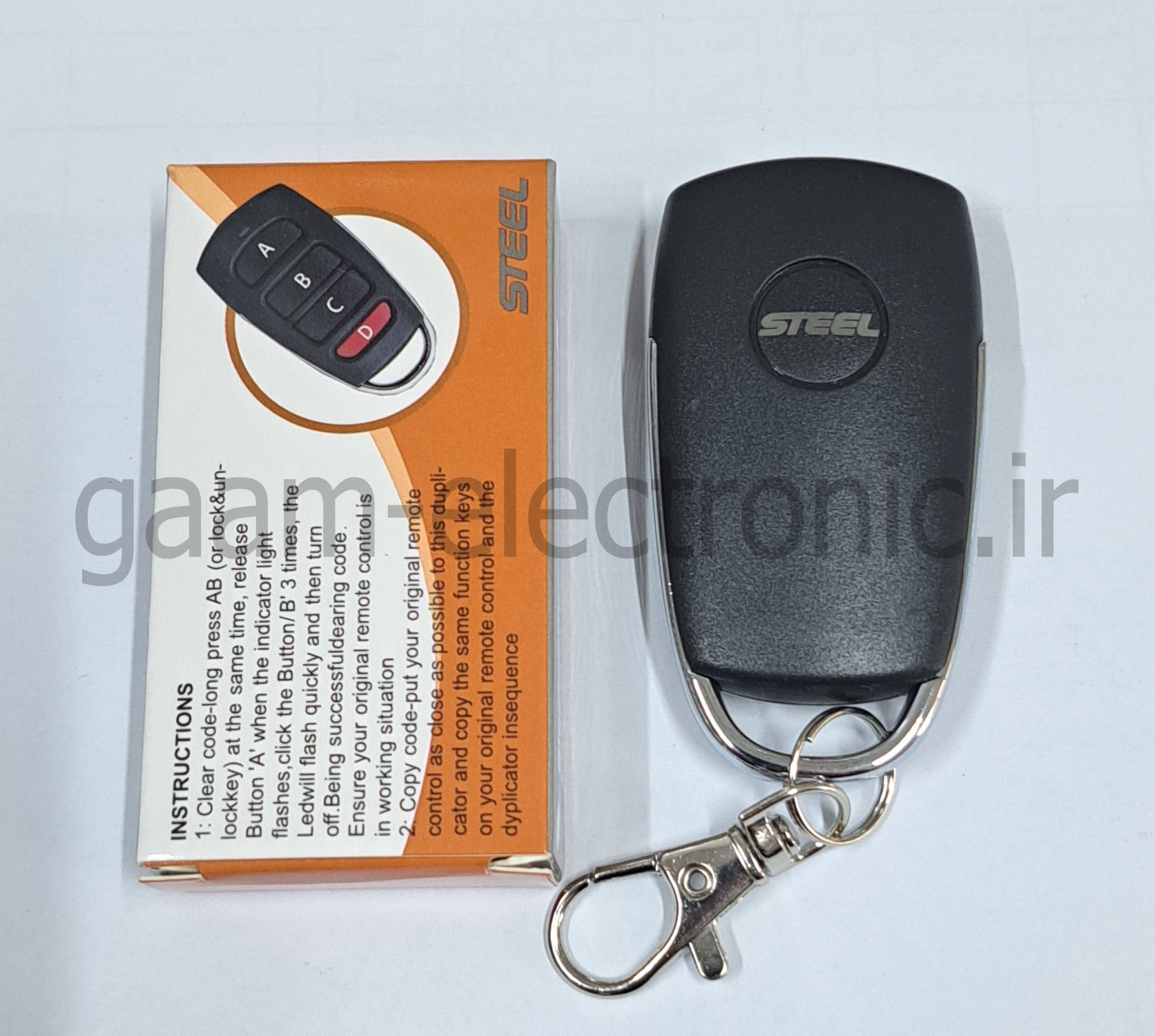 ریموت آزارایی بلوتوثی ۴۳۳ یکی از ریموت های پرکاربرد و جا افتاده در بازار می باشد که به دلیل خوش قیمت بودن فروش بالایی دارد. دکمه های ریموت با حروف A,B,C,D پوشش داده شده و جنس بدنه بسیارمقاوم است وبه دلیل اینکه دکمه ها همسطح بدنه نیستند احتمال فشاردادن تصادفی آن بسیار پایین می آید .برای راه اندازی آن از یک عددباطری سکه ای 2032 استفاده شده است. برد این ریموت در فضای آزاد به صورت تقریبی به ۶۰ متر می رسد.