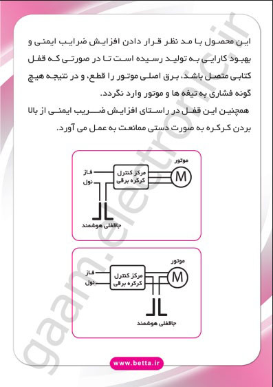 جاقفلی برقی بتا از جنس فولاد بوده که علاوه بر امنیت می تواند هوشمند عمل نماید، به گونه ای که پس از باز کردن قفل کتابی برق موتور وصل شده و امکان بالا رفتن کرکره فراهم خواهد شد.